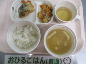 麦ごはん、鯖の竜田揚げ、切干大根の煮つけ、豆腐の味噌汁