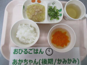 【後期食】五倍粥、ツナと玉ねぎの煮物、きゅうり煮、人参のスープ