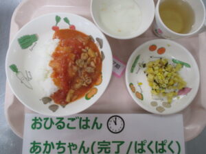 シルフィードカレー、和風マカロニサラダ、みかんヨーグルト