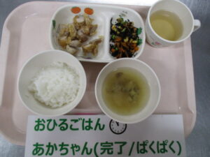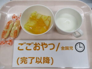 【後期食以降】牛乳、フルーツ寒天、せんべい