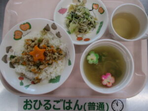 〈メニュー〉七夕そぼろ丼、磯香和え、そうめん汁