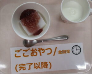 【完了期食以降】牛乳、キラキラゼリー、おせんべい