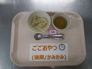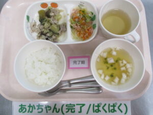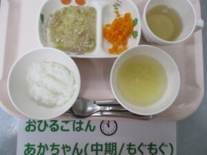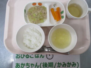 【中期食】五倍粥、ツナとなすの煮物、人参煮、玉ねぎのすまし汁