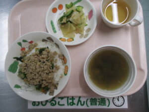 ビビンパ、大根のツナ和え、もずくのスープ