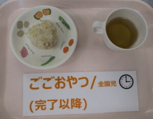 【完了期食以降】麦茶、おかかチーズおにぎり