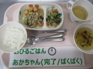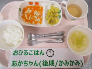 【後期食】五倍粥、豆腐と人参の煮物、さつまいも煮、白菜のすまし汁