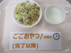 【完了食】軟飯、豚肉の焼肉炒め、ほうれん草と竹輪のごま和え、豆腐と長ねぎの味噌汁、パイン缶
