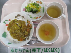 【完了食】カレーライス、ブロッコリーとチーズのサラダ、中華スープ