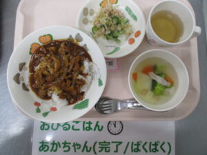 【完了食】ハヤシライス、もやしのサラダ、ポトフ風スープ