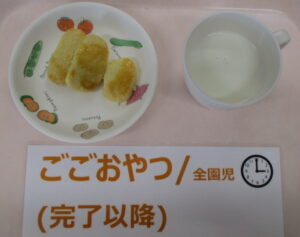【完了期食以降】牛乳、クッキーのシロップがけ