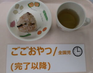 【完了期食以降】麦茶、鮭と塩昆布のおにぎり
