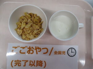 ★1/31(水)★今日の給食・おやつ 2024/01/31 ★幼児★ 〈メニュー〉 麦ごはん、すき焼き風煮、マカロニツナサラダ、もやしと卵の味噌汁 ———————————————————- ★離乳食★ 〈メニュー〉 【完了食】軟飯、すき焼き風煮、マカロニツナサラダ、もやしと卵の味噌汁 ===================================== 【おやつ】 〈メニュー〉 【完了期食以降】牛乳、コーンフレーク