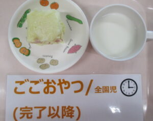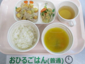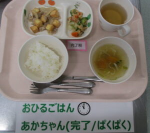 ★2/7(水)★今日の給食・おやつ 2024/02/07 ★幼児★ 〈メニュー〉 麦ごはん、厚揚げと豚肉炒め、大根の納豆和え、かぼちゃの味噌汁 ———————————————————- ★離乳食★ 〈メニュー〉 【完了食】軟飯、厚揚げと豚肉炒め、大根の納豆和え、かぼちゃの味噌汁 ===================================== 【おやつ】 〈メニュー〉 【完了期食以降】牛乳、おかず蒸しパン