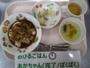 【完了食】ハヤシライス、ジャーマンポテト、野菜スープ、ゼリー