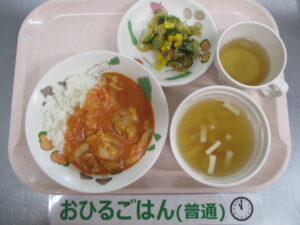 シルフィードカレー、切干大根のサラダ、高野豆腐とかまぼこのスープ