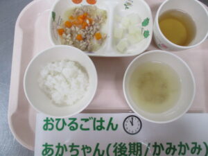 【後期食】麦茶、野菜粥