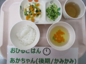 【後期食】お粥、豆腐と野菜の煮物、茹で野菜、野菜のスープ