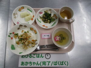 【後期食】麦茶、野菜粥ハイハイン