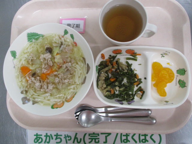 ★9/30(火)今日の給食・おやつ★ 2025/09/30 ◆◆◆給 食◆◆◆ あんかけうどん 茎わかめのきんぴら みかん缶 ————————————— ◇◇◇おやつ◇◇◇ 牛乳 五平餅 ================================ ★離乳食のメニュー★ (※完了期食・・軟飯+幼児メニューに同じ) ◆◆◆給 食◆◆◆ <後期食> あんかけうどん 煮野菜 ◇◇◇おやつ◇◇◇ 麦茶 味噌粥
