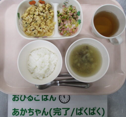 ★10/2(木)今日の給食・おやつ★ 2025/10/02 ◆◆◆給 食◆◆◆ ご飯 親子煮 白菜とハムの酢の物 なすとえのきの味噌汁 ————————————— ◇◇◇おやつ◇◇◇ 牛乳 チーズおやき ================================ ★離乳食のメニュー★ (※完了期食・・軟飯+幼児メニューに同じ) ◆◆◆給 食◆◆◆ <後期食> ※提供なし ◇◇◇おやつ◇◇◇ ※提供なし ※完了期食・・幼児メニューに同じ