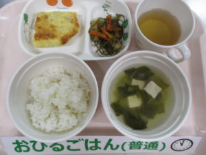 ★2/10(木)★今日の給食・おやつ 2022/02/10 【 給 食 】 ★幼児★ <メニュー> ご飯、そぼろ入り卵焼き、すき昆布煮、小松菜と豆腐の味噌汁 ———————————– ===================================== 【 おやつ 】 <メニュー> のりスナッ麩、牛乳
