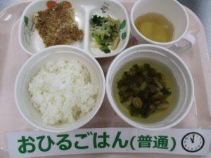 (完了食)軟飯、松風焼き、ナムル、しめじのすまし汁