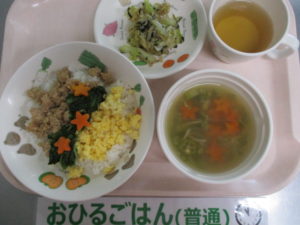 (完了期)七夕そぼろ丼、磯香和え、そうめん汁