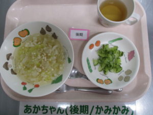 (後期食)あんかけうどん(鶏ひき肉・キャベツ・玉ねぎ)、きゅうり煮