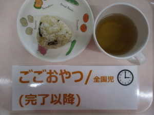 (完了期以降食)麦茶、おかか昆布おにぎり
