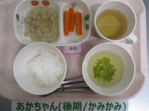 (後期食)麦茶、野菜粥(米・人参)