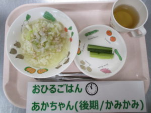 (後期食)麦茶、野菜粥(米・人参)