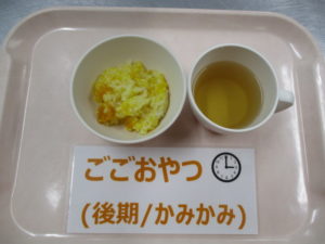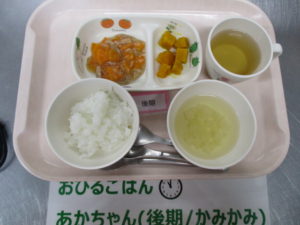 (後期食) 麦茶、野菜粥(米・かぼちゃ)