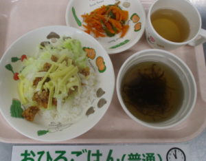 【完了食】タコライス、人参しりしり、もずくのスープ