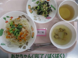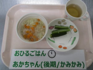 【後期食】麦茶、野菜粥(米・人参)