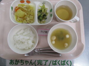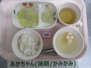 【後期食】麦茶、野菜粥