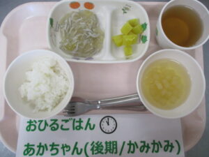 【後期食】五倍粥、しらすと玉ねぎの煮物、さつまいも煮、大根のスープ
