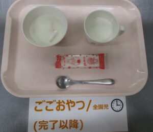 【完了食以降】牛乳、フルーツヨーグルト、せんべい