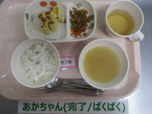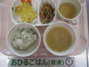 【完了食】軟飯、千草焼き、きんぴらごぼう、高野豆腐の味噌汁