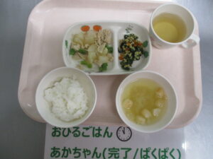 【中期食】五倍粥、高野豆腐と大根の煮物、ほうれん草煮、玉ねぎの味噌汁