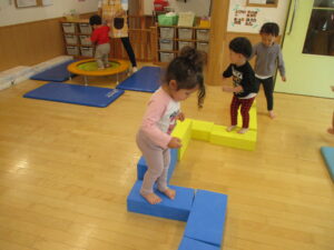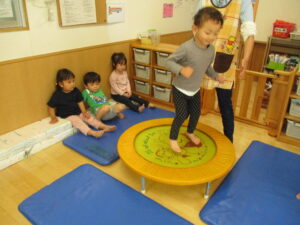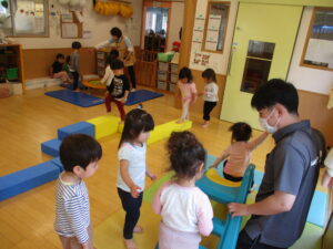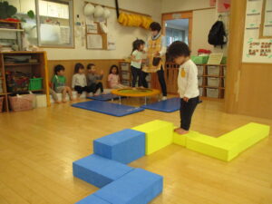 5/10(水)【きらきら】お部屋で運動! 2023/05/10 今日は、お部屋ですべり台と平均台、トランポリンで遊びました。遊びの準備をしている時からワクワク、ソワソワしていて楽しみにしている様子が伝わってきました!遊び始めるとしっかり順番を守り並んで待つことができていてとてもおりこうさんでした♪ ▼1番人気のすべり台! ▼ジグザグ平均台上手に歩けるかな? ▼ピョンピョン楽しいな♪ きらきら 金子