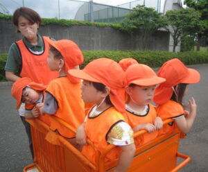 紫陽花を見つけることはできませんでしたが、オレンジ色のかわいい実がたくさんついている枇杷の木を眺めたり、大きな大きなアリの巣を見つけたりと、たのしいお散歩になりました。