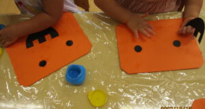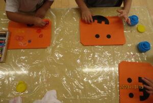 10月になってからお部屋にハロウィンの壁面や、街でハロウィンの物を目にする機会も増え、「ハロウィンが怖い」と言うお友だちがいたりして、制作中も怖がったりしないか心配でしたが、そんなお友だちも楽しんで作ることができました!終わった後には「ハロウィンすき!」と感想を♪ お家に持って帰ってから、かばんの中にお菓子を入れたりして、楽しんでもらえたらいいなと思います。