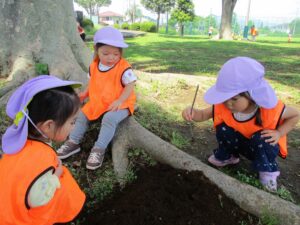 モグラは光に弱いとされていますが、たま~に昼間、地上にでてくることもあるようです。子どもたちも夢中で探していたので、ぜひおうちの方も一緒に探しに行ってみてください!