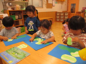 そらまめさん、おまめさんと言っても、土日のおやすみをはさんだので思い出すのがなかなか難しかったですが、【そらまめくんのベッド】の絵本を出すと「あー!!」と言い、目をまあるくさせて思い出したお友だち。