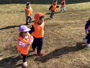 広場では、おにいさん・おねえさんたちと一緒に「かけっこ」「かくれんぼ」「だるまさんがころんだ」などの遊びを楽しみました。