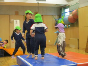 ▼弾力のあるマットの上を思いっきりジャンプ????
