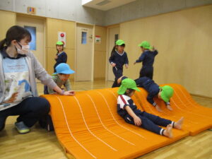 今日は、わくわくB組さん・ぽかぽかさん一緒に、異年齢での運動遊びをしました。
