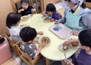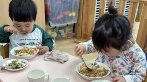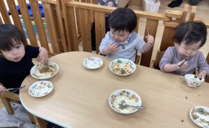 今日の藤沢の気温は15℃!気持ちの良いぽかぽか陽気の中、お外でたくさん遊んだお友だち。保育園に戻ると、なんだかとってもいい匂いが!!