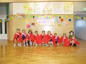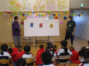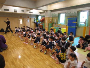 7/8(木) 7月誕生会 2022/07/07 今日は7月生まれのおともだちの誕生会。乳児・幼児合同で行いました。 ▼本日の誕生児への質問コーナー「好きな玩具は何ですか?」 ▼今日の先生からの出し物「どろろん!!忍者学校!」 ▼7月生まれのおともだち ☆Happy birthday☆ 梅雨明けが早くて、夏が長~く感じられそうですが、みんな体調には気を付けましょう わくわくB 水谷