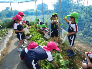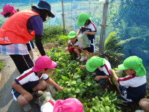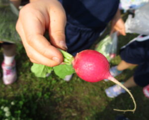 5/22(月)【わくAB】<食育・畑>ラディッシュの収穫!! 2023/05/22 今日は、ラディッシュの収穫に行きました。まんまるに育ったラディッシュ。「先生~!こんなにおっきい!!!」あちこちから、そんな声が聞こえてきました。 毎年採りたてをその場で洗って食べていますが、暑かったので保育園に戻って試食(^o^) 「あとはママに持って帰ろ~っと」と、お土産に! 次の収穫は、きゅうりやじゃがいも、ミニトマトが採れそうです。